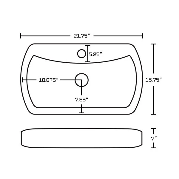- 21.75-in. Width (left to right). 15.75-in. Depth (back to front). 7-in. Height (top to bottom).