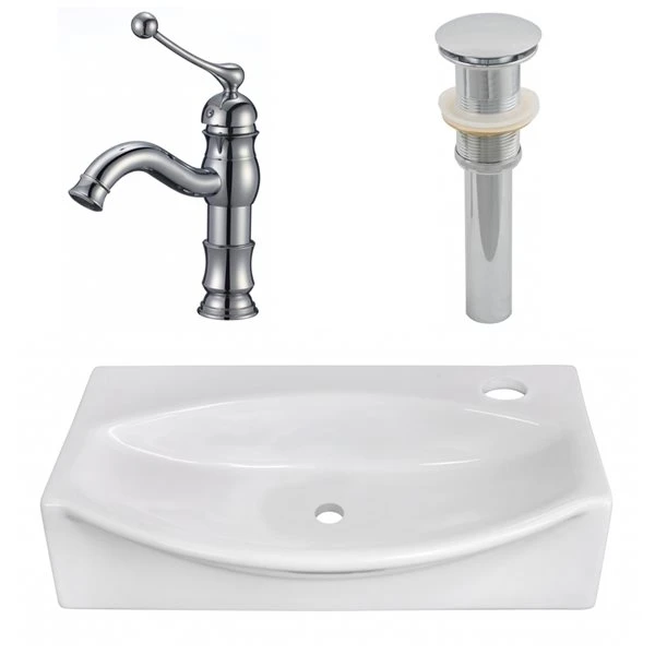 American Imaginations White Ceramic Bathroom Sink With Faucet And Drain (12-in X 16.5-in)