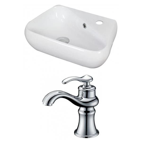 - Includes 1 white bathroom sink and 1 chrome sink faucet