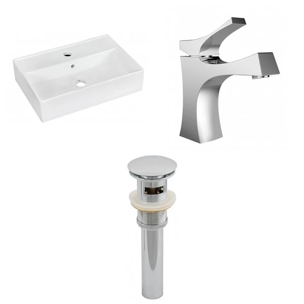 American Imaginations White Ceramic Rectangular Bathroom Sink Kit (13.75-in X 19.75-in)