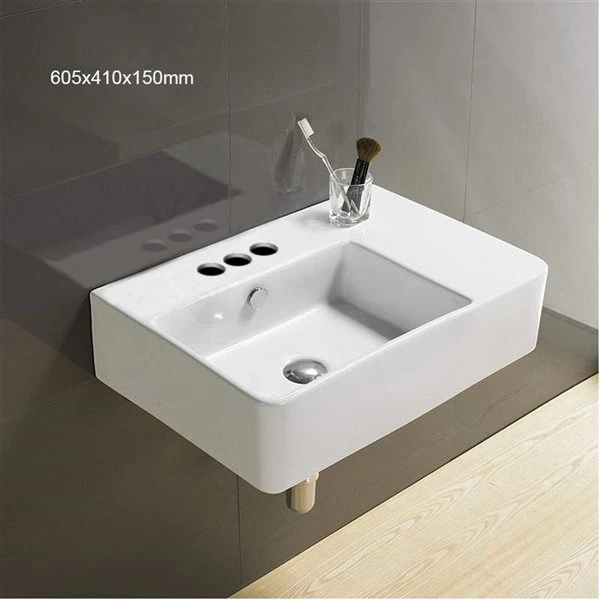 American Imaginations White Ceramic Rectangular Wall-Mount Bathroom Sink – Overflow Drain Included (16.1-in X 23.8-in)