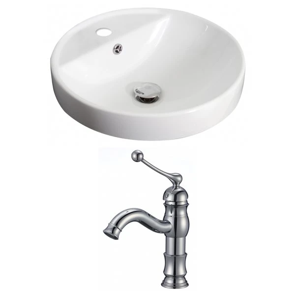 American Imaginations White Ceramic Round Drop-In Bathroom Sink – Overflow Drain And Faucet Included (18.25-in X 18.25-in)