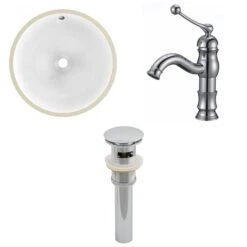 - Includes 1 bathroom undermount sink in white colour, 1 bathroom sink faucet in chrome colour and 1 bathroom sink drain in chrome colour