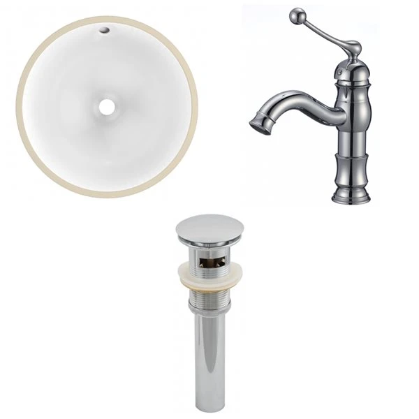 American Imaginations White Ceramic Undermount Round Bathroom Sink Faucet With Chrome Hardware (15 1/4-in X 15 1/4-in)