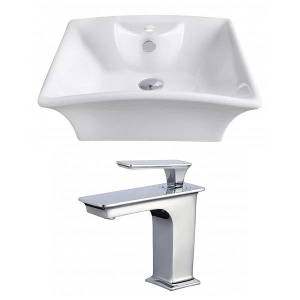 American Imaginations White Ceramic Vessel Rectangular Bathroom Sink – Faucet And Overflow Drain Included (16.25-in X 19.5-in)