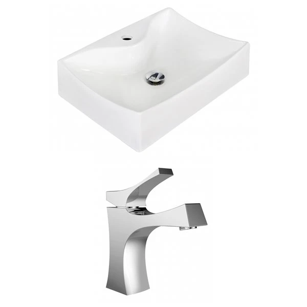 American Imaginations White Ceramic Vessel Rectangular Bathroom Sink – Faucet Included (15.75-in X 21.5-in)