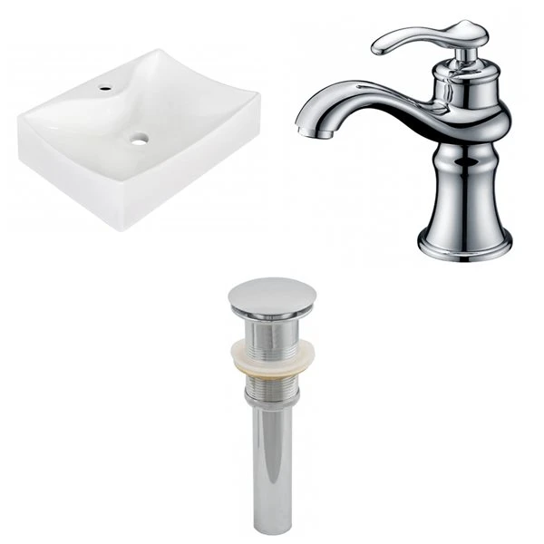 American Imaginations White Ceramic Vessel Rectangular Bathroom Sink Kit (15.75-in X 21.5-in)