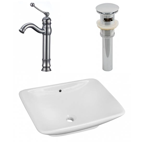 American Imaginations White Ceramic Vessel Rectangular Bathroom Sink Set (17-in X 21.5-in)