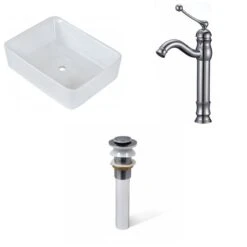 Be the first to review “American Imaginations White Ceramic Vessel Rectangular Bathroom Sink With Chrome Faucet And Drain (14.75-in X 18.75-in)” Cancel reply