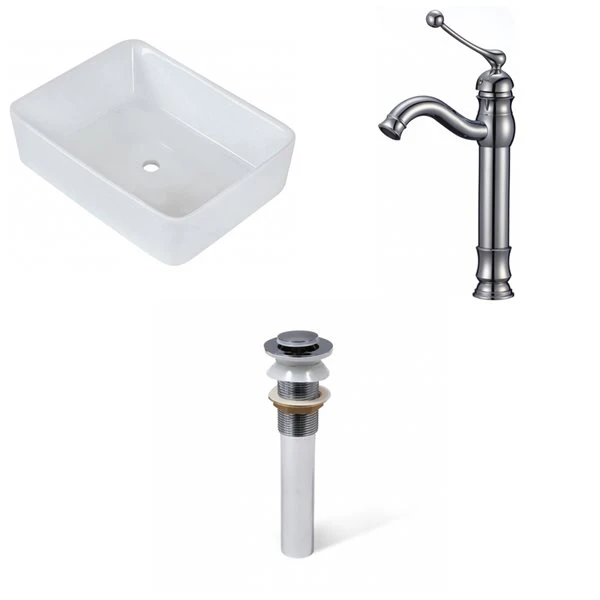 American Imaginations White Ceramic Vessel Rectangular Bathroom Sink With Chrome Faucet And Drain (14.75-in X 18.75-in)