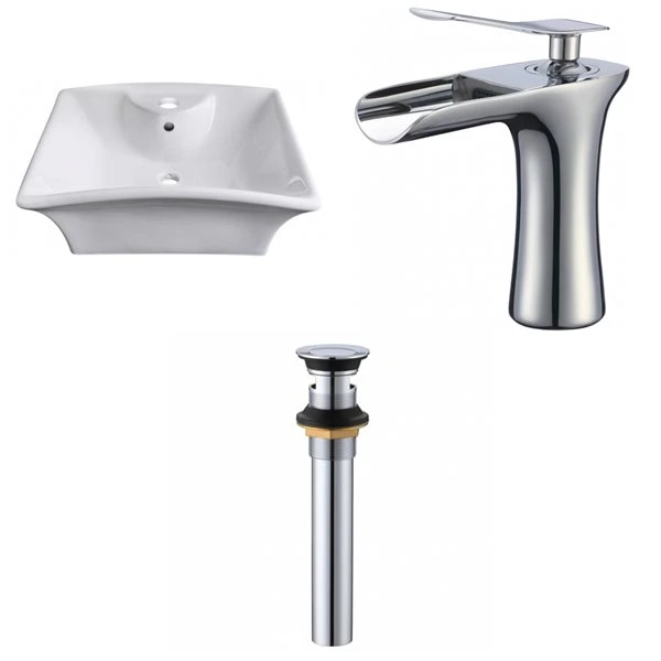 American Imaginations White Ceramic Vessel Rectangular Bathroom Sink With Chrome Faucet And Drain (16.25-in X 19.5-in)