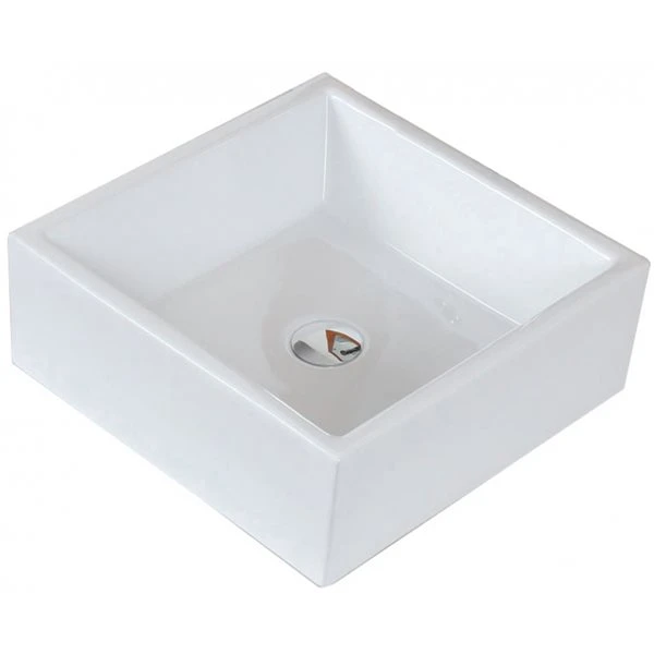 American Imaginations White Ceramic Vessel Square Bathroom Sink – Faucet And Drain Included (14.75-in X 14.75-in)