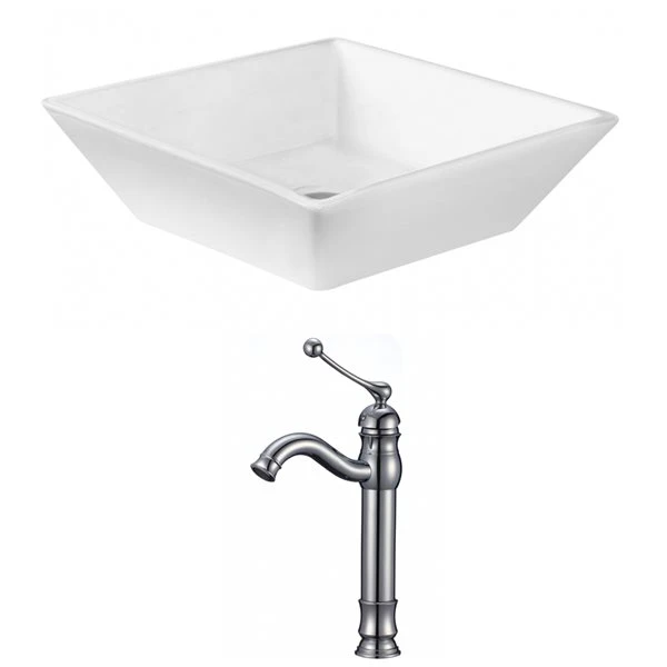 American Imaginations White Ceramic Vessel Square Bathroom Sink With Chrome Faucet (15.75-in X 15.75-in)