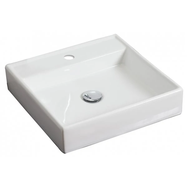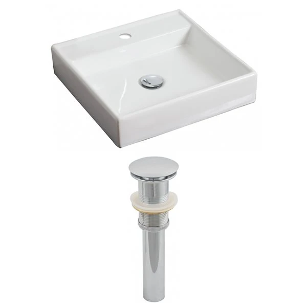 American Imaginations White Ceramic Vessel Square Bathroom Sink With Drain (17.5-in X 17.5-in)