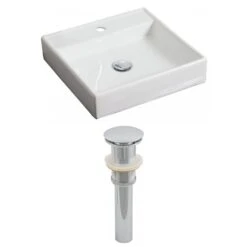 Be the first to review “American Imaginations White Ceramic Vessel Square Bathroom Sink With Drain (17.5-in X 17.5-in)” Cancel reply