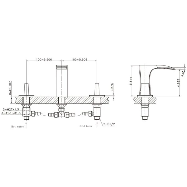 - Designed for a 3h8-in faucet and the faucet drilling location is on the centre