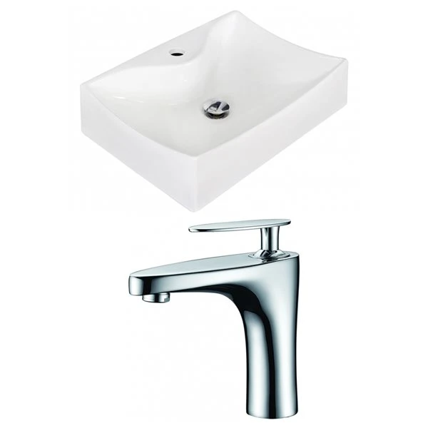 American Imaginations White Ceramic Wall-Mount Rectangular Bathroom Sink With Faucet (15.75-in X 21.5-in)