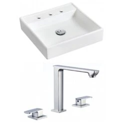 Be the first to review “American Imaginations White Ceramic Wall-Mount Square Bathroom Sink With Faucet (17.5-in X 17.5-in)” Cancel reply