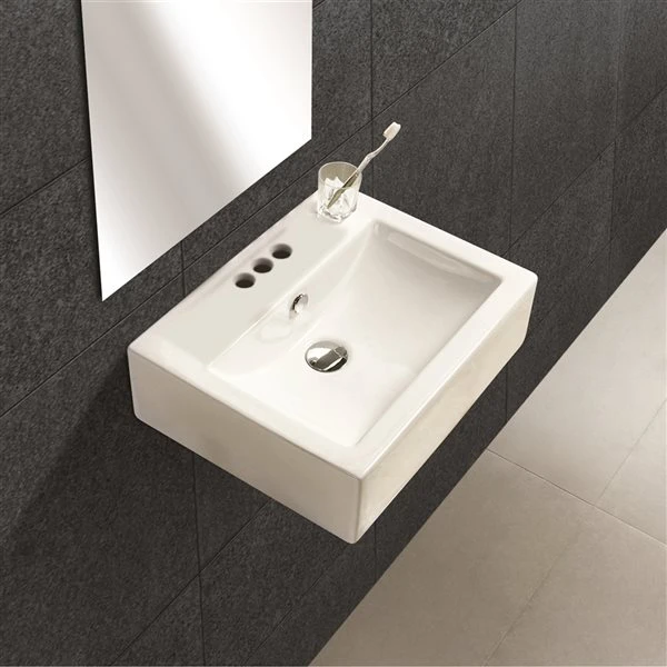 American Imaginations White Ceramic Wall-Mounted Rectangular Bathroom Sink (16.25-in X 20.25-in)
