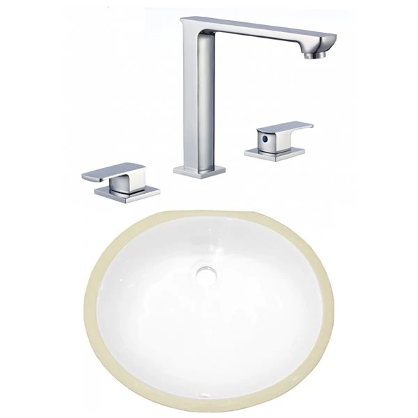 American Imaginations White Enamel Undermount Oval Bathroom Sink And Faucet With Overflow Drain (13.25-in L X 16.5-in W)