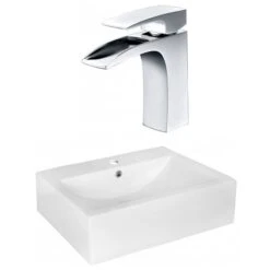 American Imaginations White Rectangular Ceramic Vessel Bathroom Sink – Overflow Drain And Faucet Included (16.25-in X 20.25-in)
