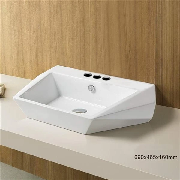 American Imaginations White Rectangular Ceramic Vessel Bathroom Sink – Overflow Drain Included (18.3-in X 27.2-in)