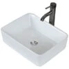 - Includes 1 white bathroom sink and 1 chrome sink faucet
