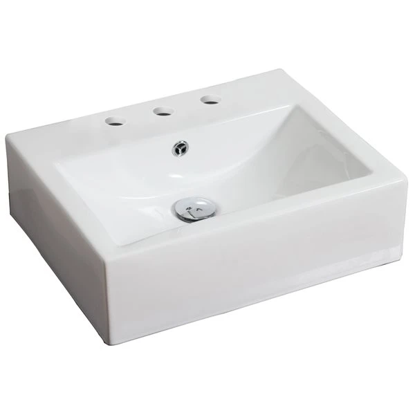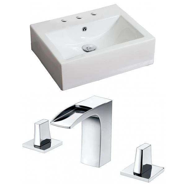 American Imaginations White Rectangular Ceramic Wall-Mount Bathroom Sink – Faucet And Overflow Drain Included (16.5-in X 21-in)
