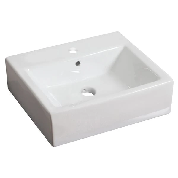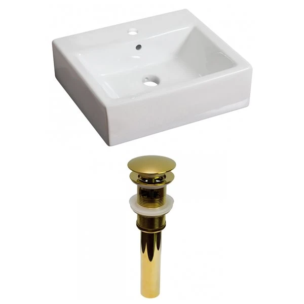 American Imaginations White Rectangular Vessel Bathroom Sink With Chrome Drain And Gold Overflow Drain (16.5-in L X 21-in W)