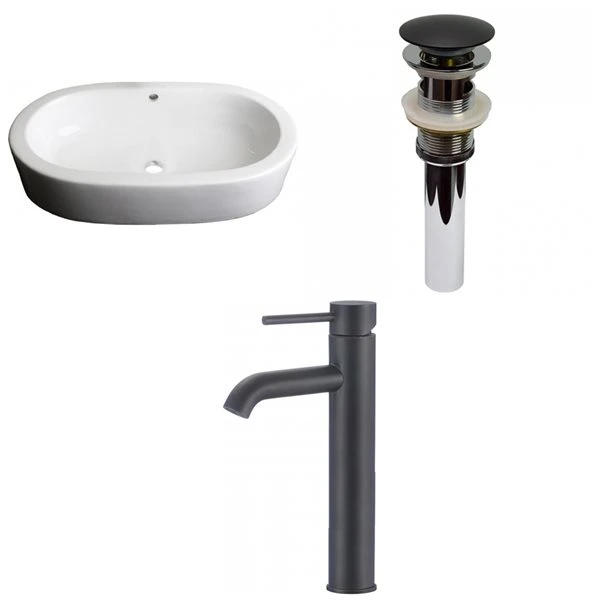 American Imaginations White Vessel 14.5-in L X 25.25-in Oval Bathroom Sink With Chrome Drain And Black Faucet And Overflow Dra