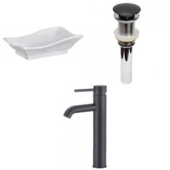 Be the first to review “American Imaginations White Vessel Irregular Bathroom Sink With Chrome Drain And Black Faucet (14-in L X 20-in W)” Cancel reply