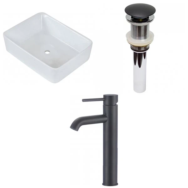 American Imaginations White Vessel Rectangular Bathroom Sink With Chrome Drain And Black Faucet (14.75-in L X 18.75-in W)