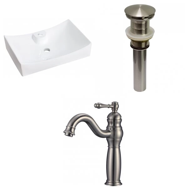 American Imaginations White Vessel Rectangular Bathroom Sink With Chrome Drain And Brushed Nickel Faucet (17.75-in L X 26-in W)