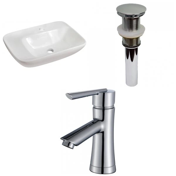 American Imaginations White Vessel Rectangular Bathroom Sink With Chrome Drain And Faucet – 17.25-in L X 23.5-in W