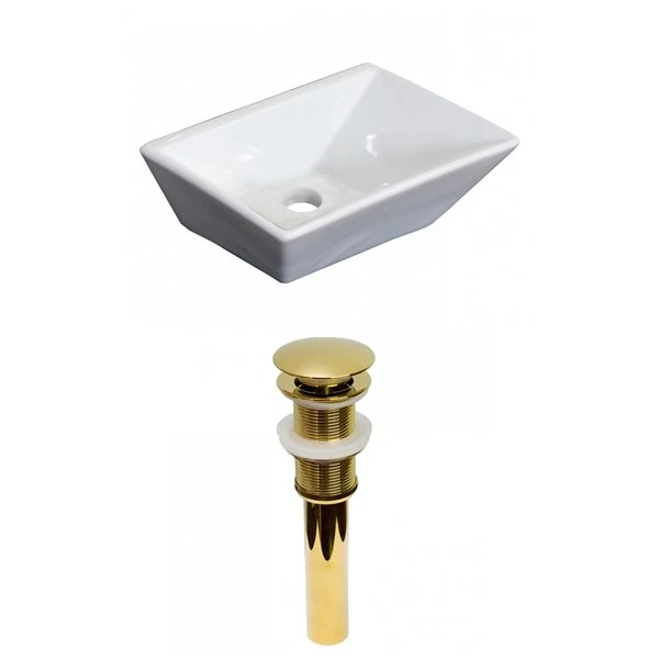 American Imaginations White Vessel Rectangular Bathroom Sink With Chrome Drain And Gold Hardware (9-in L X 12-in W)