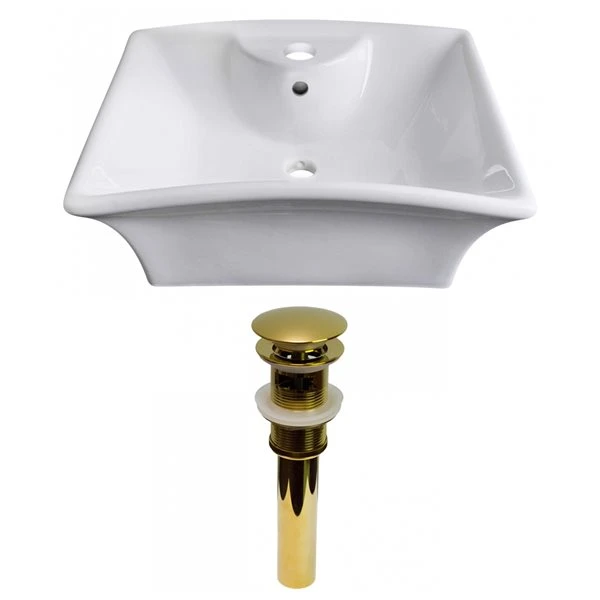 American Imaginations White Vessel Rectangular Bathroom Sink With Chrome Drain And Gold Overflow Drain (16.25-in L X 19.5-in W)