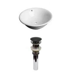Be the first to review “American Imaginations White Vessel Round Bathroom Sink With Chrome Drain And Black Overflow Drain (17-in L X 17-in W)” Cancel reply