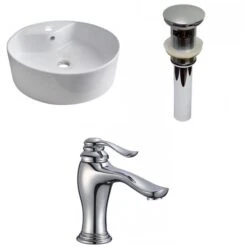 Be the first to review “American Imaginations White Vessel Round Bathroom Sink With Chrome Drain And Faucet And Overflow Drain (18.25-in L X 18.25-in W” Cancel reply