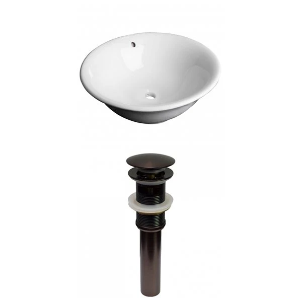 - Includes a bathroom vessel sink in white, and a bathroom sink drain in oil-rubbed bronze