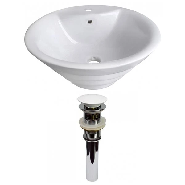American Imaginations White Vessel Round Bathroom Sink With Chrome Drain And White Overflow Drain (19.25-in L X 19.25-in W)