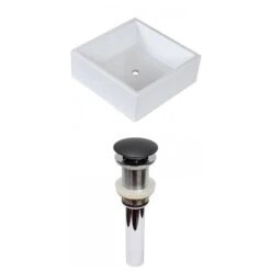 Be the first to review “American Imaginations White Vessel Square Bathroom Sink With Chrome Drain And Black Hardware (14.75-in L X 14.75-in W)” Cancel reply