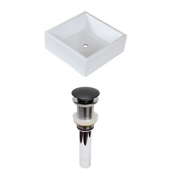 American Imaginations White Vessel Square Bathroom Sink With Chrome Drain And Black Hardware (14.75-in L X 14.75-in W)