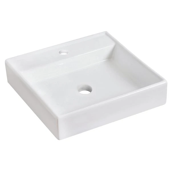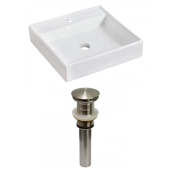 American Imaginations White Vessel Square Bathroom Sink With Chrome Drain And Brushed Nickel Hardware (17.5-in L X 17.5-in W)