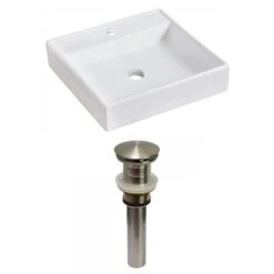 Be the first to review “American Imaginations White Vessel Square Bathroom Sink With Chrome Drain And Brushed Nickel Hardware (17.5-in L X 17.5-in W)” Cancel reply