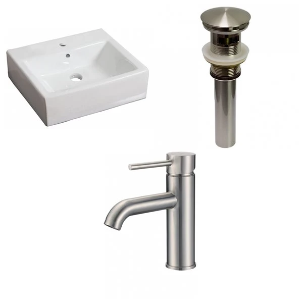 American Imaginations White Wall Mount 16.5-in X 21-in Bathroom Sink With Chrome Drain And Nickel Faucet And Overflow Drain
