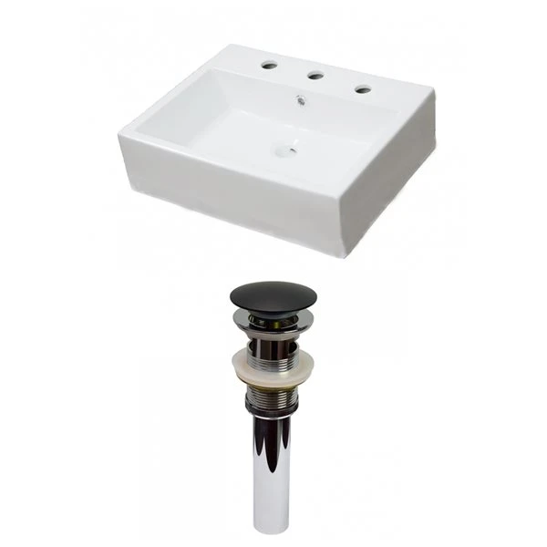 American Imaginations White Wall Mount Rectangular Bathroom Sink With Chrome Drain And Black Overflow Drain – 16.5-in X 21-in