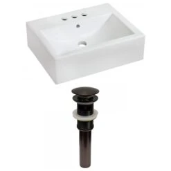 - Includes a bathroom vessel sink in white, and a bathroom sink drain in oil-rubbed bronze