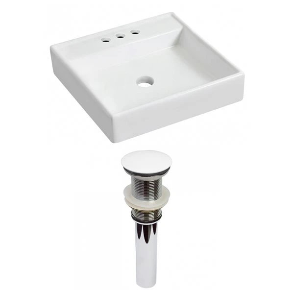 American Imaginations White Wall Mount Square Bathroom Sink With White Hardware And Chrome Drain (17.5-in L X 17.5-in W)