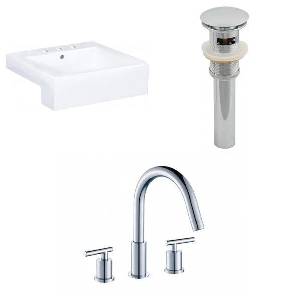 - Includes: 1 bathroom vessel sink in white, 1 bathroom sink faucet in chrome, 1 bathroom sink drain in chrome