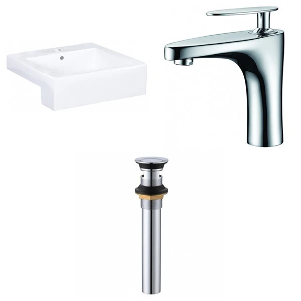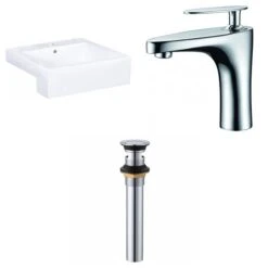 - Includes 1 bathroom vessel sink in white (1581), 1 bathroom sink faucet in chrome (1782), 1 bathroom sink drain in chrome (33592)